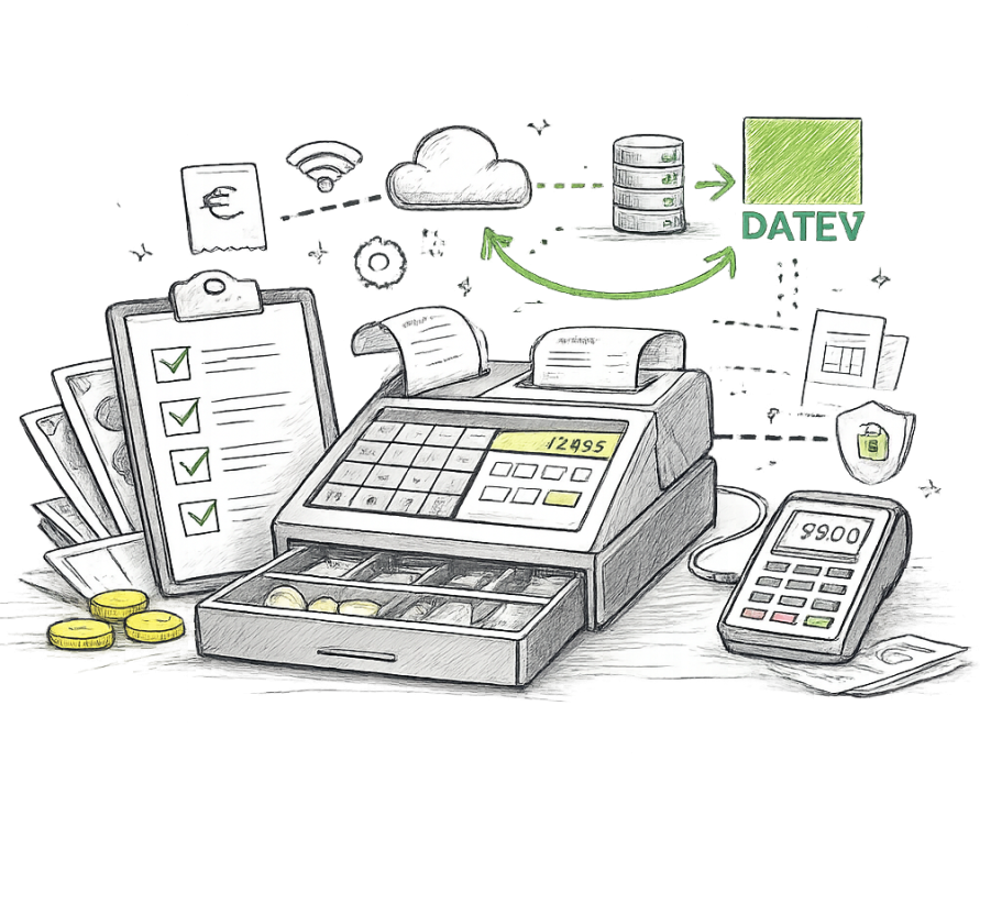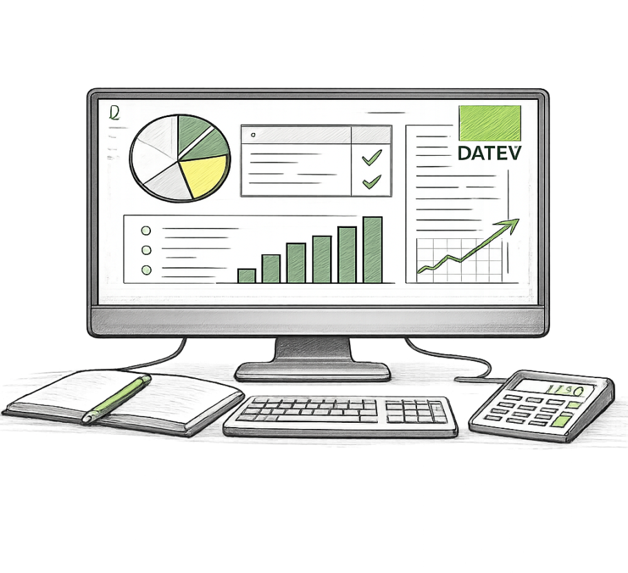 고객사에 사용 중인 소프트웨어 (ERP 시스템, POS, 재고관리 시스템, 청구·인보이스 시스템, 온라인 쇼핑몰, 인사관리 시스템 등) 를 저희 KIM & Partner 세무사무소의 기장시스템 DATEV 와 연동해드립니다.